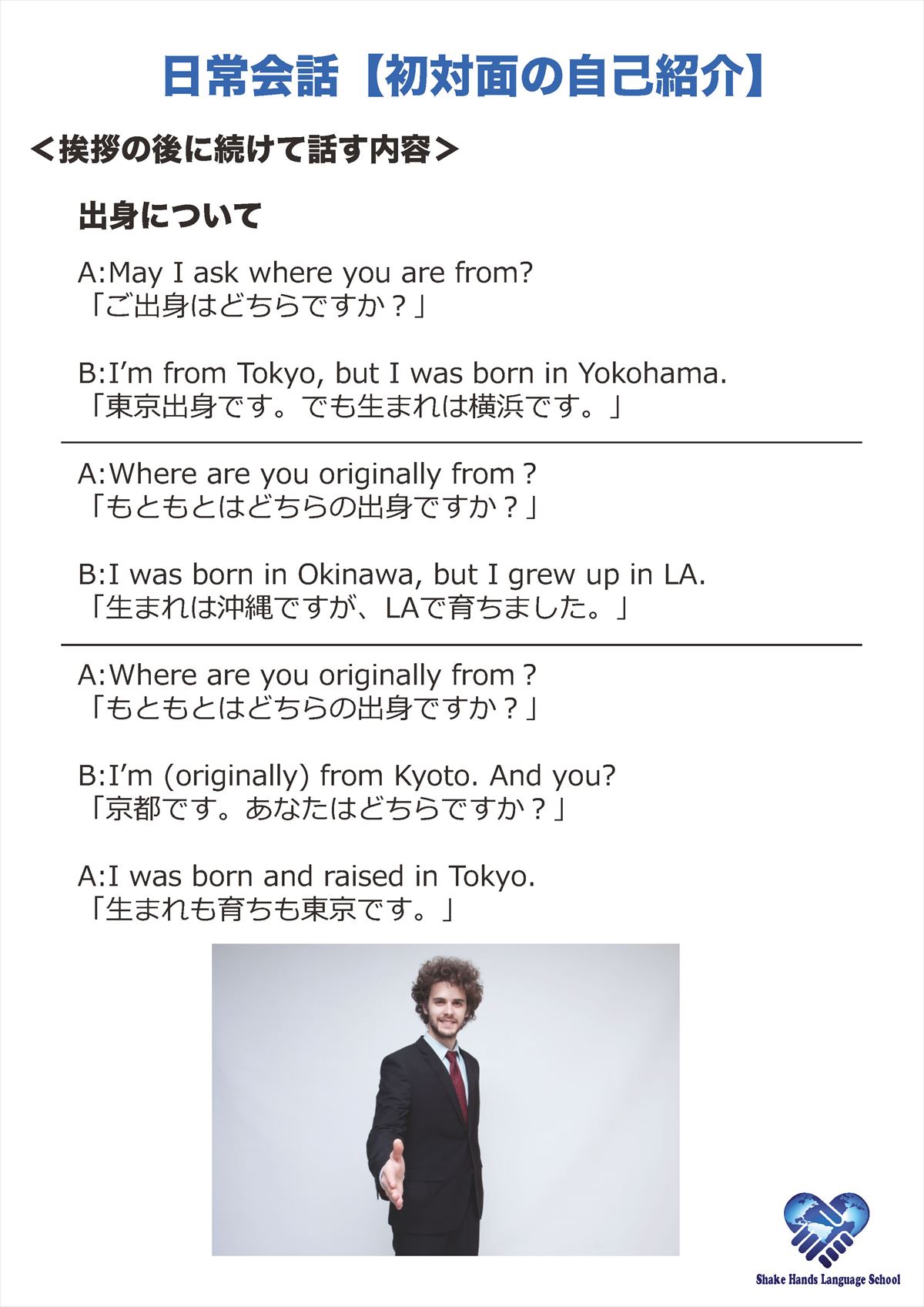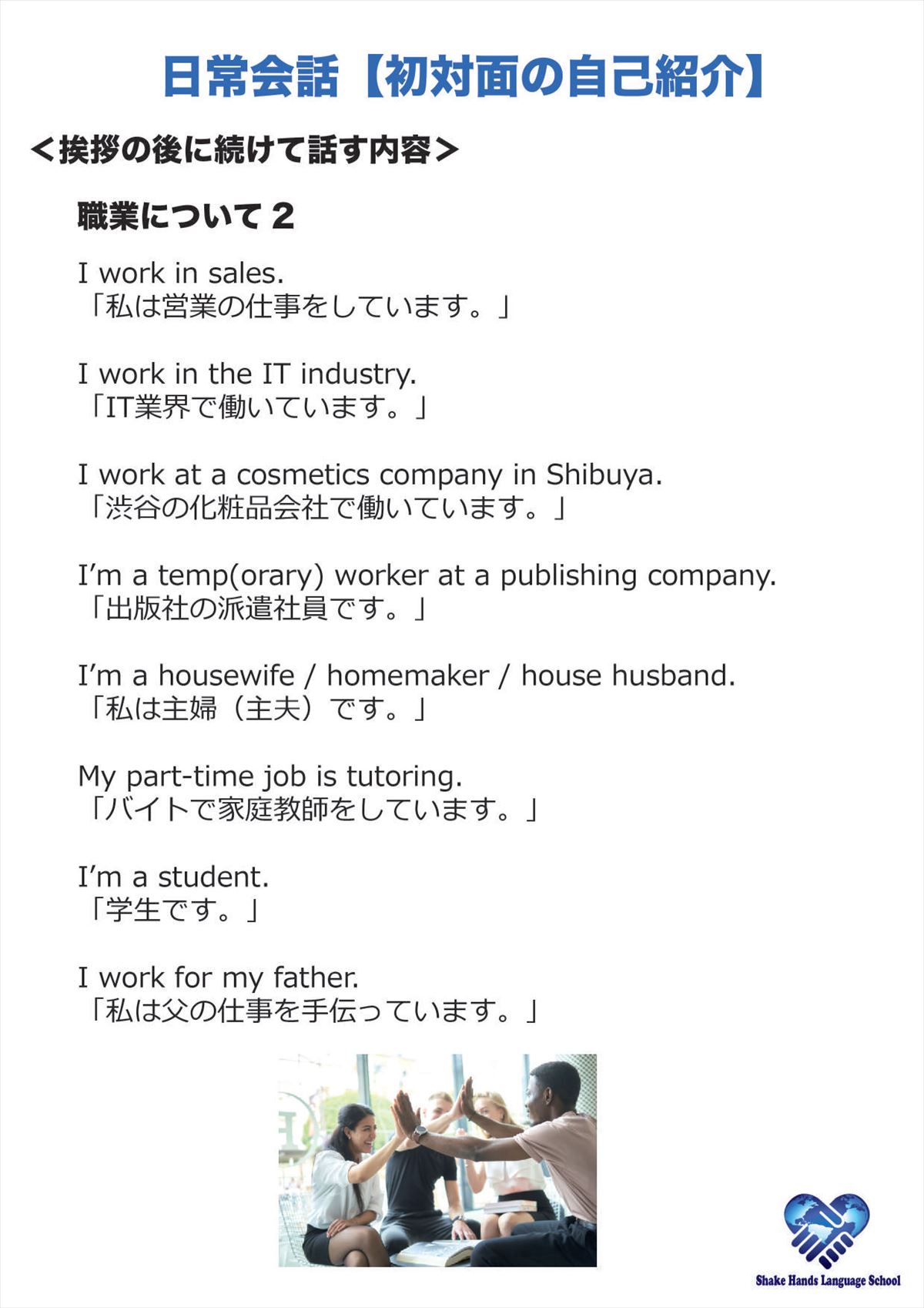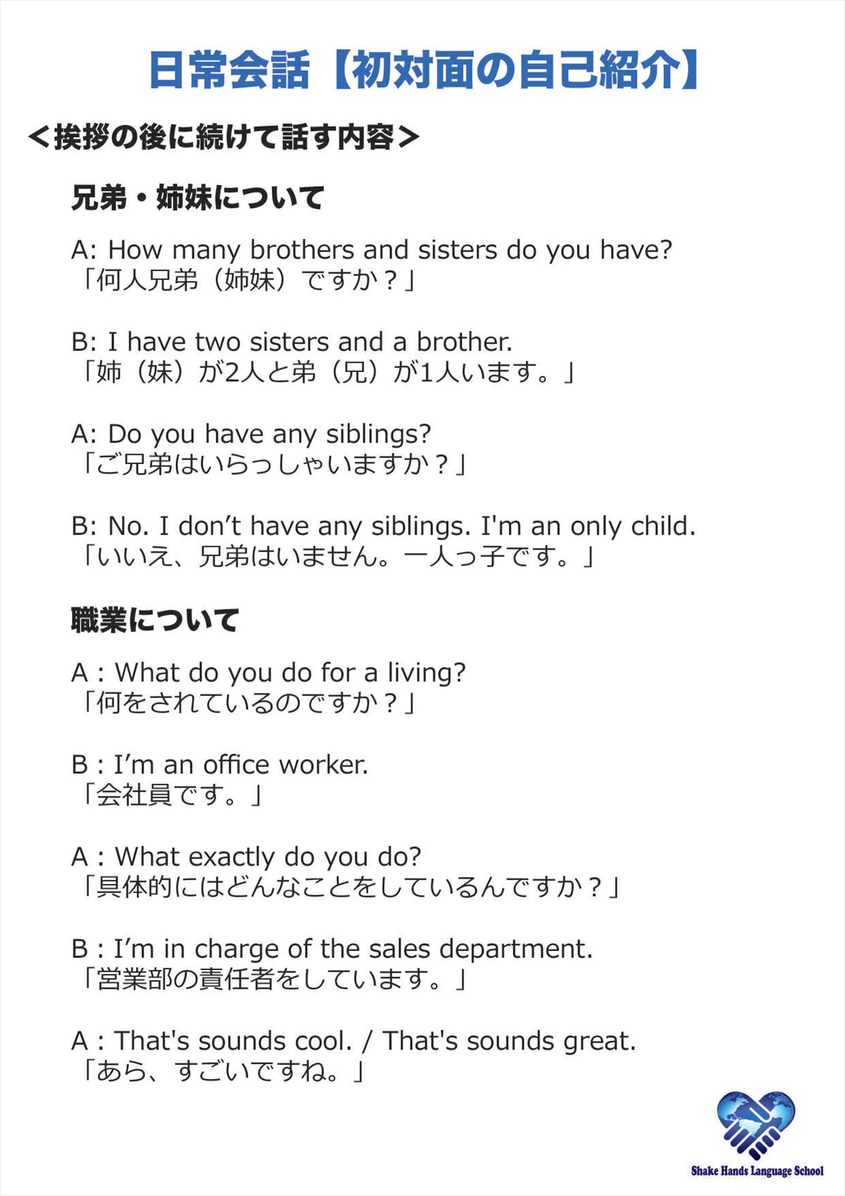 日常会話初級者コース(自己紹介での会話文編)