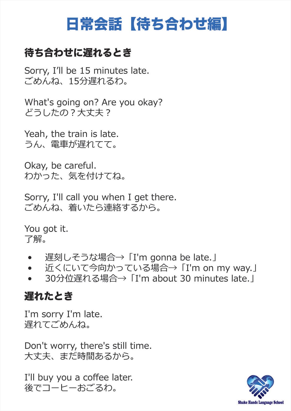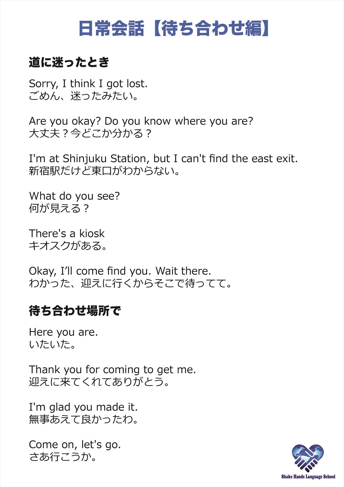 日常会話初級者コース(待ち合わせでの会話文編 ②)