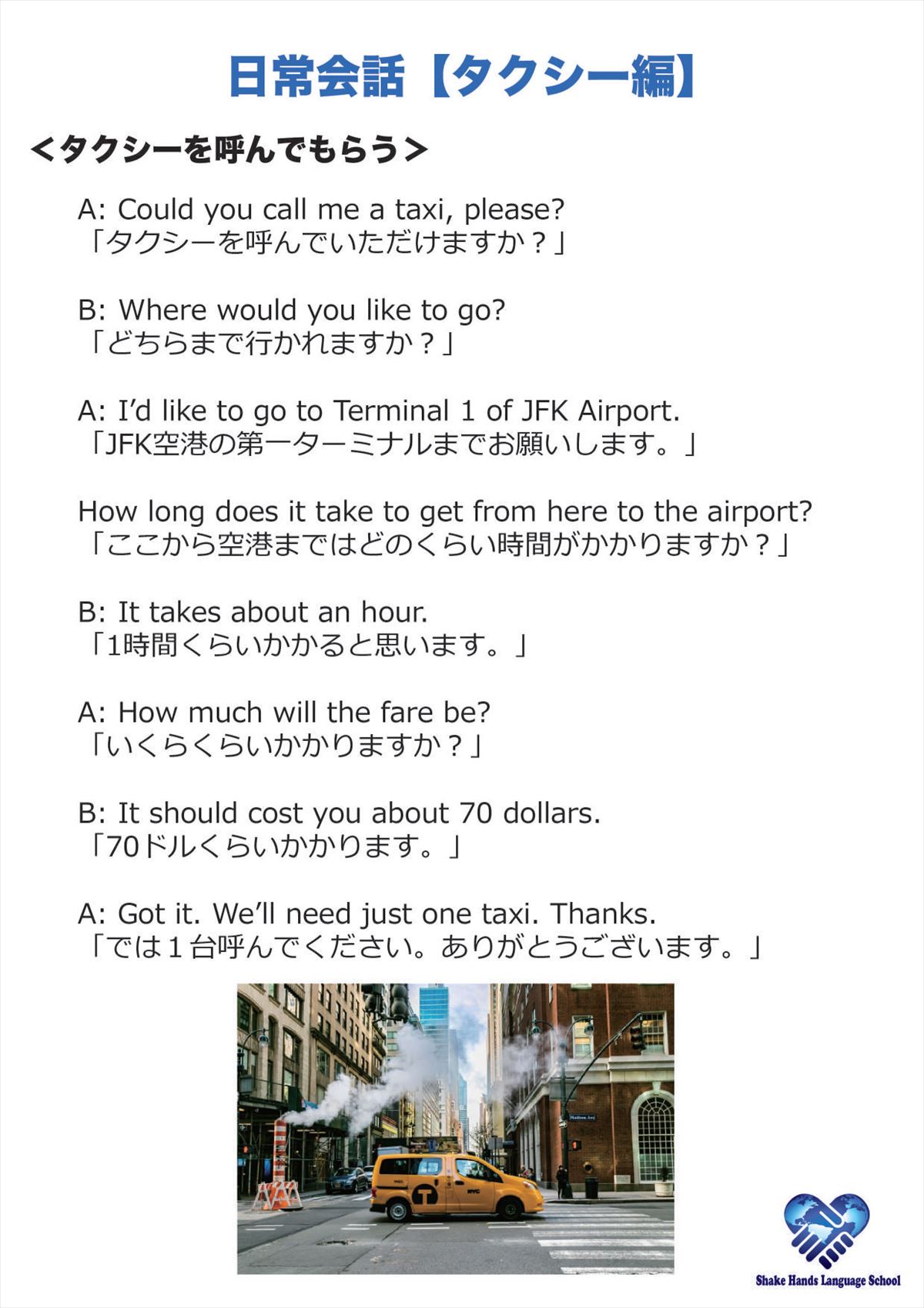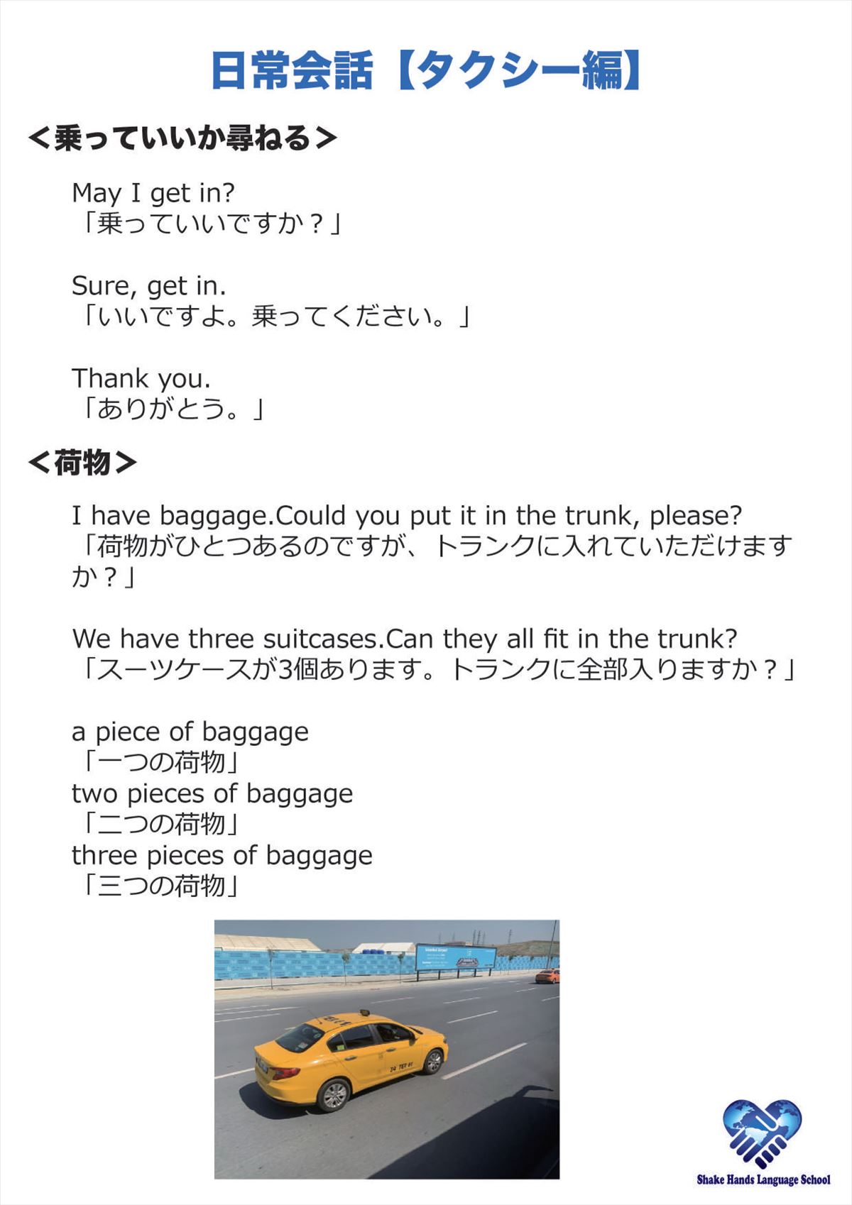 日常会話初級者コース(タクシーでの会話文編 ①)