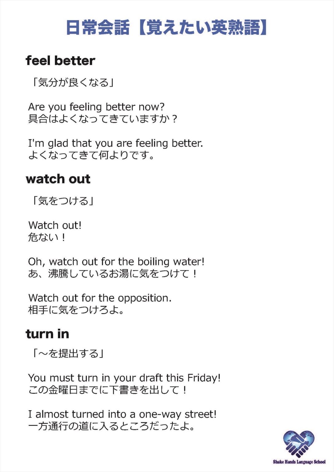 日常会話初級者コース(熟語を使った英文編 ④)